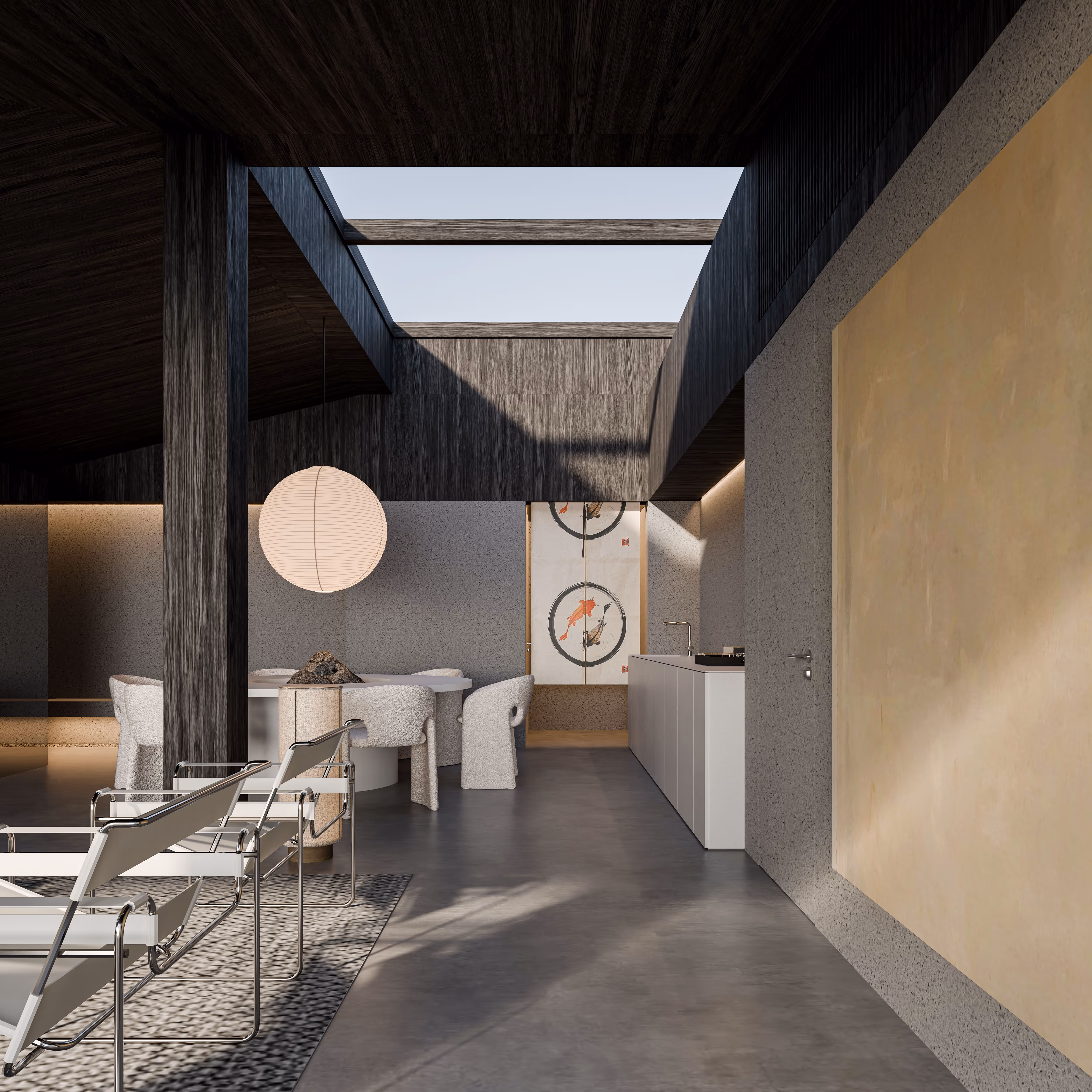 The principle of zoning: the house develops from the open garden to the private bedroom and patio. It is a scenario of peace and return to oneself.